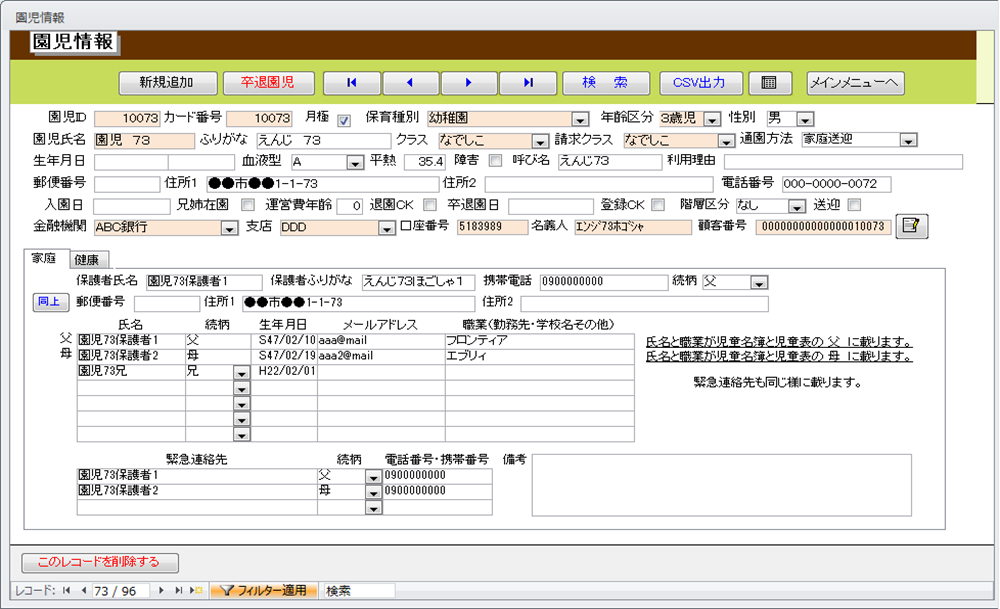 園児の基本情報管理