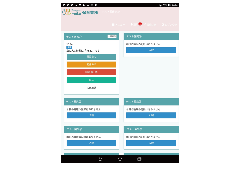 睡眠・排泄・検温はタップで管理日誌と連絡帳に連動!!