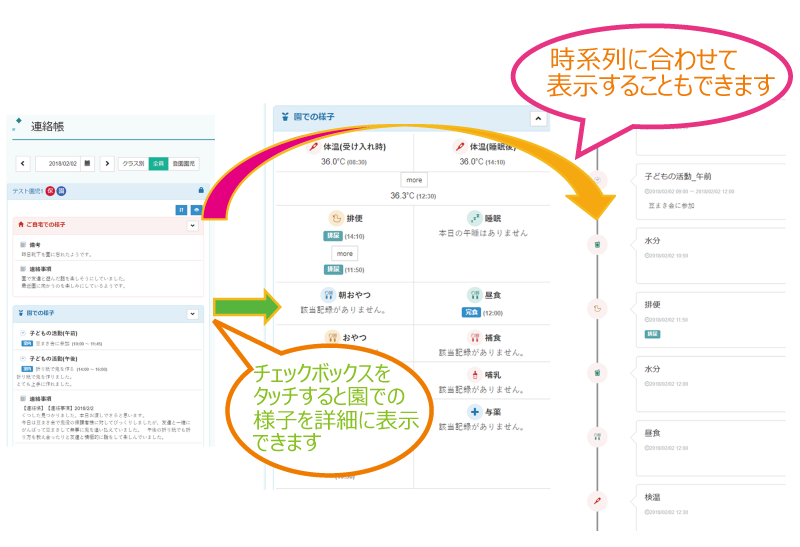 また、記録された情報は連絡帳に連動します。