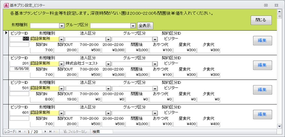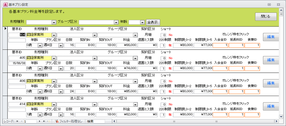すでに多くの種類の料金請求の基本パッケージを有しております。料金体系や請求体系・稼働時間など園や施設ごとにルールは異なります。