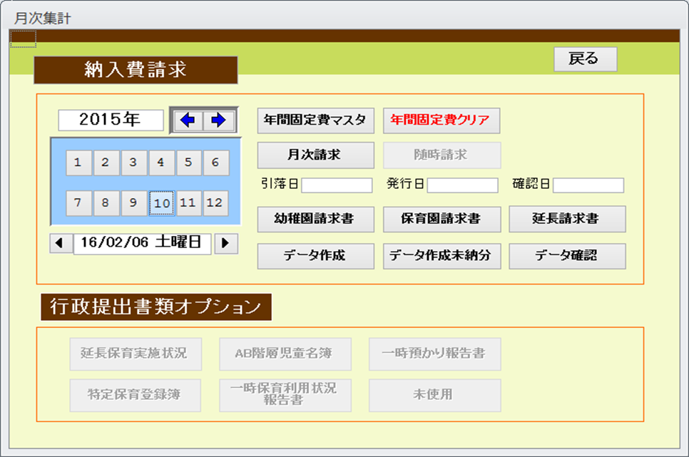 延長保育実施状況報告書などの行政提出書類については、個別別途対応いたします。