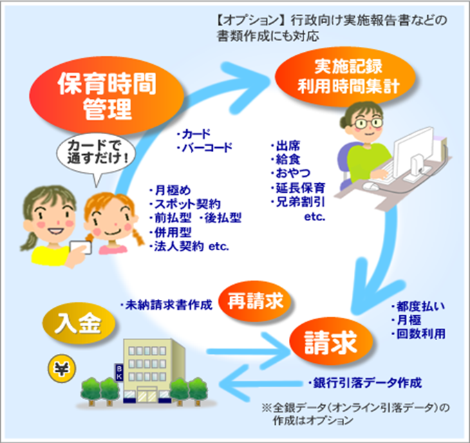 保育時間の集計・請求・引落しデータ作成・入金処理(オプション)※